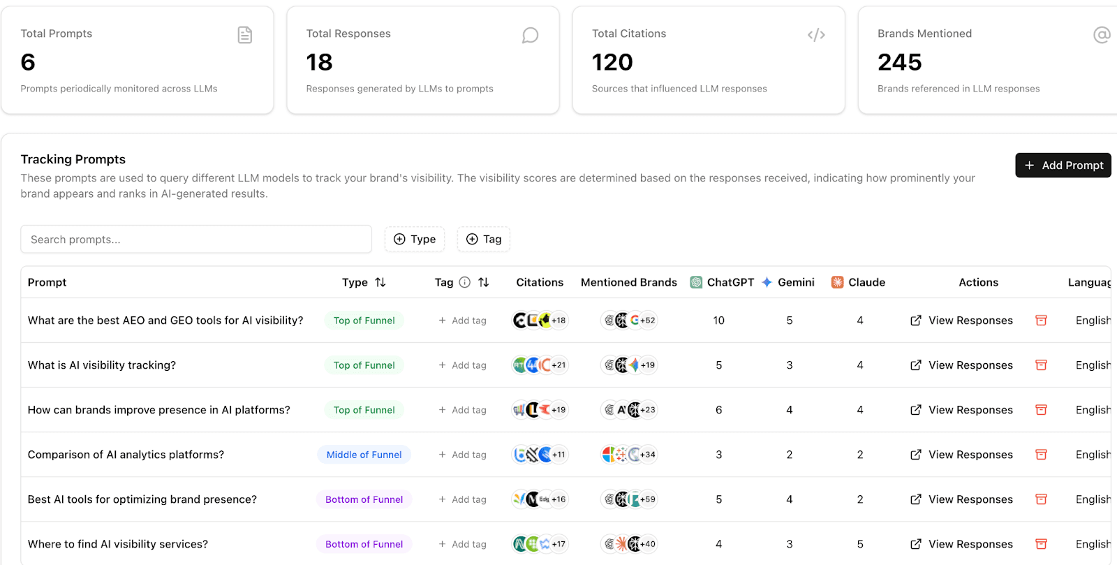 This is where Visby AI becomes valuable. Beyond content creation, it helps you manage the entire AI visibility workflow. You can track how your brand appears across AI-generated answers, monitor prompt-level visibility, and identify which queries trigger (or fail to trigger) your content.