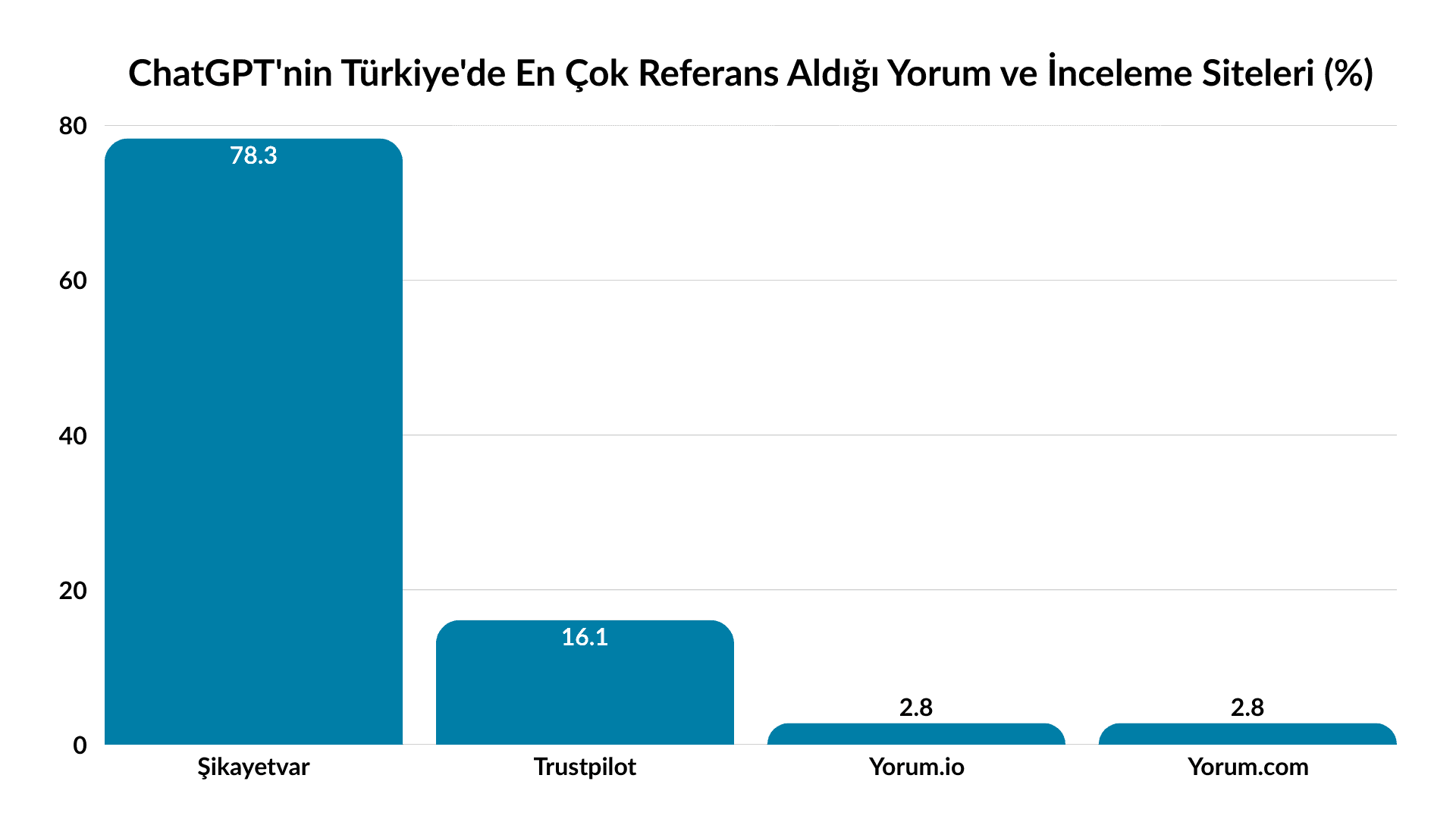 Yerel platform ekosistemi: Global analizlerde Reddit, Quora, G2 dominansı varken, Türkiye'de Sikayetvar, Ekşi Sözlük, Akakçe, Donanım Haber gibi yerel platformlar çok daha güçlü. ChatGPT'nin Türkiye hakkında sorulan sorulara yanıt verirken hangi kaynaklara başvurduğu, global trendlerden farklı.